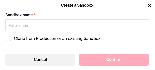 4. Sandbox 이름을 입력 후 체크박스 체크 후 Confirm 을 클릭한다
